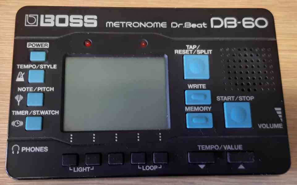 Metronom vedle základních funkcí, nabízí menu rytmických paternů či možnost vytváření vlastních rytmů. Z dalších specifik uveďme paměťovou funkci ukládání více temp pro jednotlivé „songy", zasmyčkování, tapování tempa, mód pro ladění, nastavení hlasitosti a podsvícený display. Digitální metronom. Vestavěná ladička, stopky, časovač. Funkce Note Mix umožňuje vytvořit bicí paterny. Loop Play funkce vyvolá uložené nastavení. Pořadí paternů můžeme nastavit podle vlastních potřeb. Napájení: 2xAA baterie. 100% stav. Cena 1.299 Kč. tel. 797 864 944 email: patmatvm@email.cz