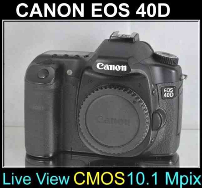Digitální jednooká zrcadlovka pro zkušené amatérské a poloprofesionální fotografy – EOS 40D. S 10,1megapixelovým snímačem CMOS, souvislým snímáním rychlostí 6,5 sním./s, novým systémem automatického zaostřování a 3,0" LCD displejem s režimem Live View. EOS 40D je poloprofesionální zrcadlovka, která uspokojí i vysoce náročné fotografy