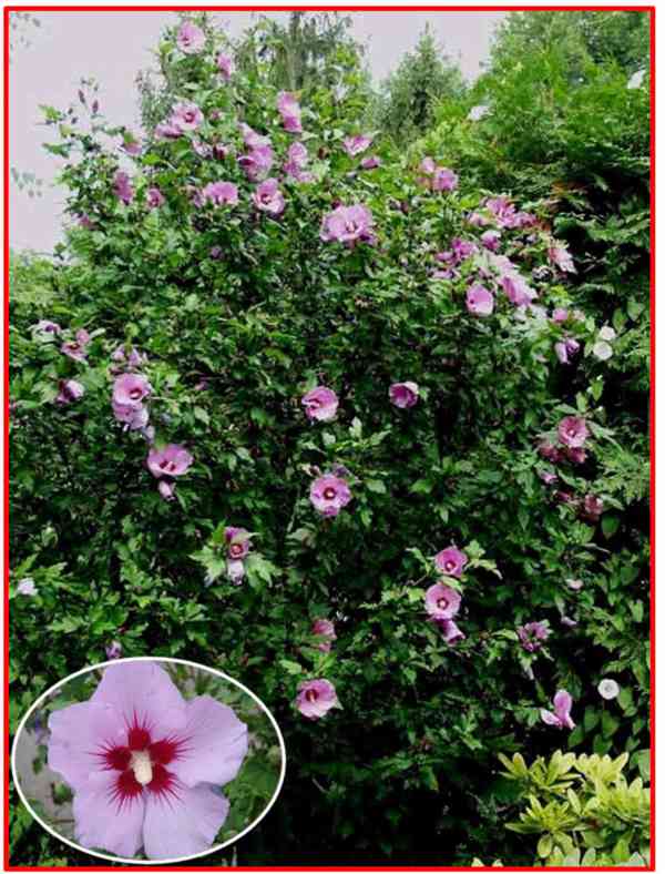 Hibiscus Syriacus L. (Ibišek syrský) je fialový, exoticky působící okrasný opadavý a bohatě větvený keř z čeledi slézovitých, pocházející z východní Asie. Kvete v létě nádhernými velkými květy vyrůstajícími z paždí listů, které jsou krátce řapíkaté, 7 – 12 cm dlouhé, trojlaločnaté. Plodem jsou tobolky.