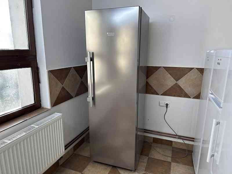 Energetická třída A++. Nerez dveře. Šedé boky. Velká chladící schopnost - rychle vychladí celý prostor. Objem 355 litrů. Displej. Nastavení a zobrazení vnitřní teploty na displeji. Vnitřní ventilátor pro lepší prochlazení prostoru. Antibakteriální provedení. Zvukový alarm. LED osvětlení. Automatické odtávání. Možná záměna dveří na opačné otevírání. Vnější rozměry: Hloubka 65 cm. Šířka 59,5 cm. Výška 185,5 cm.